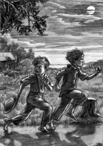 I’m a jumble of second thoughts.  Got a book report due Monday.  Hadn’t even read Tom Sawyer or Huck Finn.